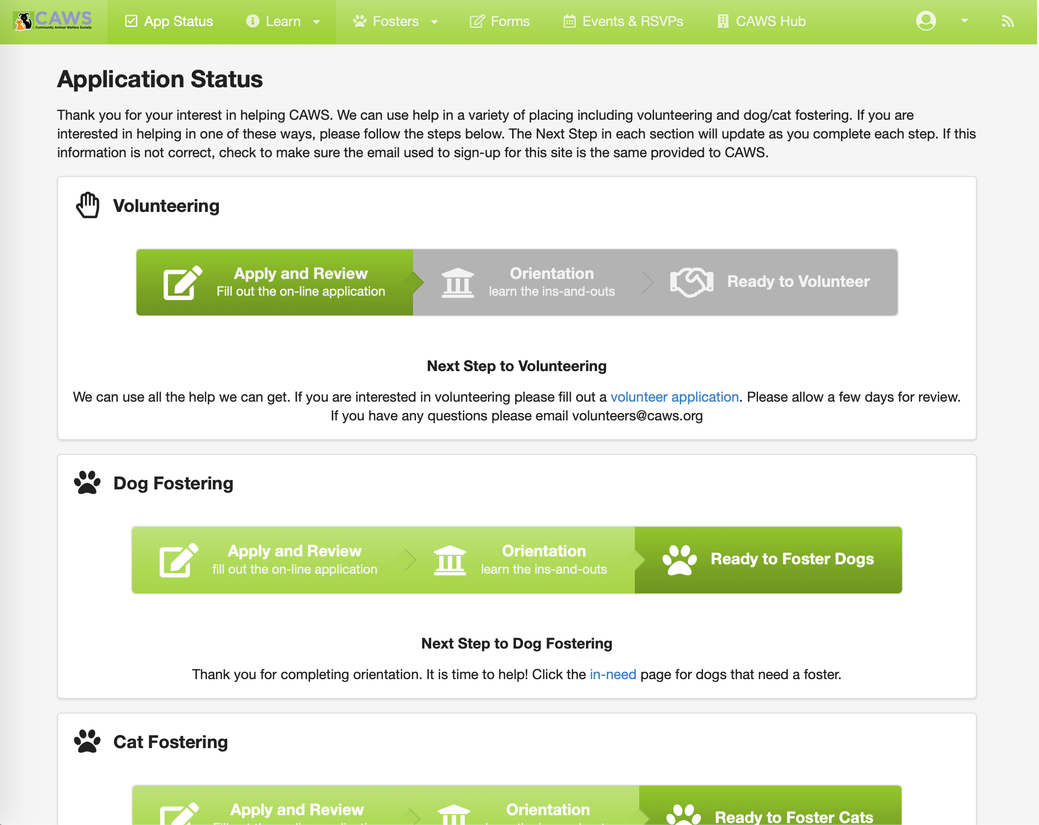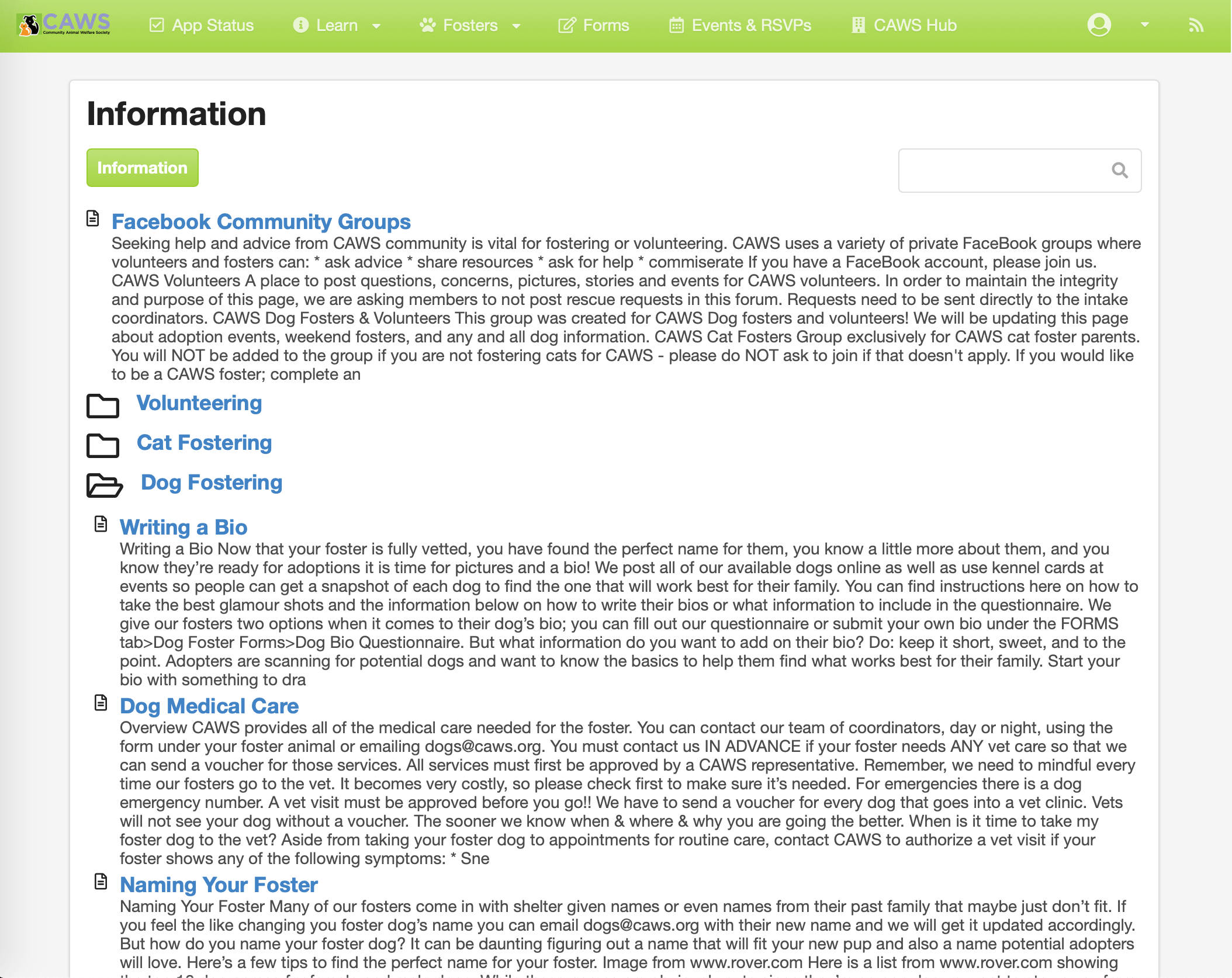 As a volunteer based organization, CAWS's most valuable resource is volunteers. During the time as secretary, I focused upon providing policy and technological tools to volunteers including: