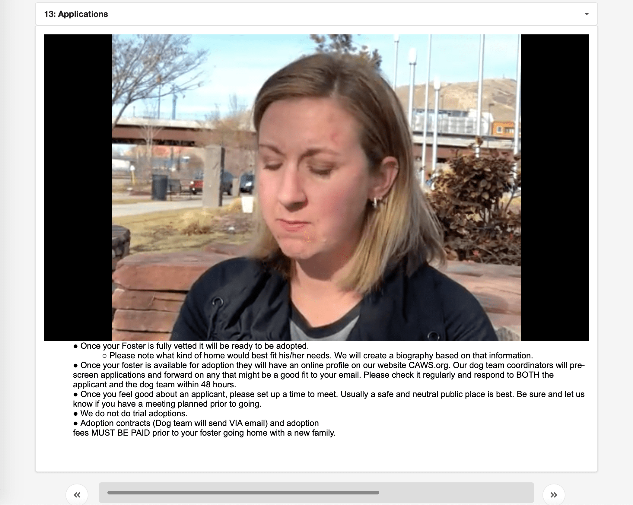 Developed the framework and contributed to the content for a volunteer and foster based online tutorial/course series. Courses included text and video content customized for each volunteer based upon their roles.