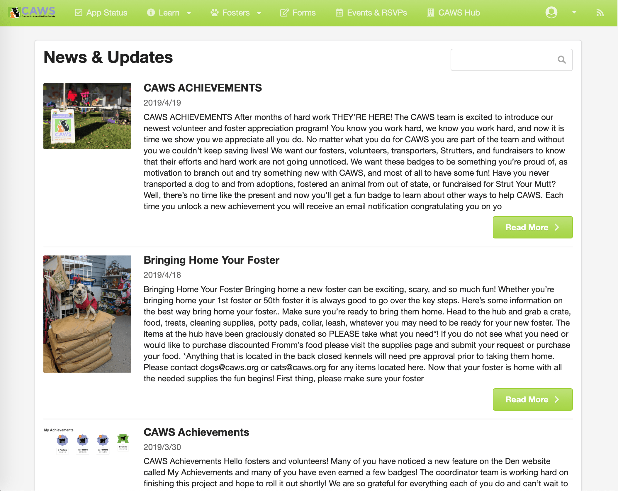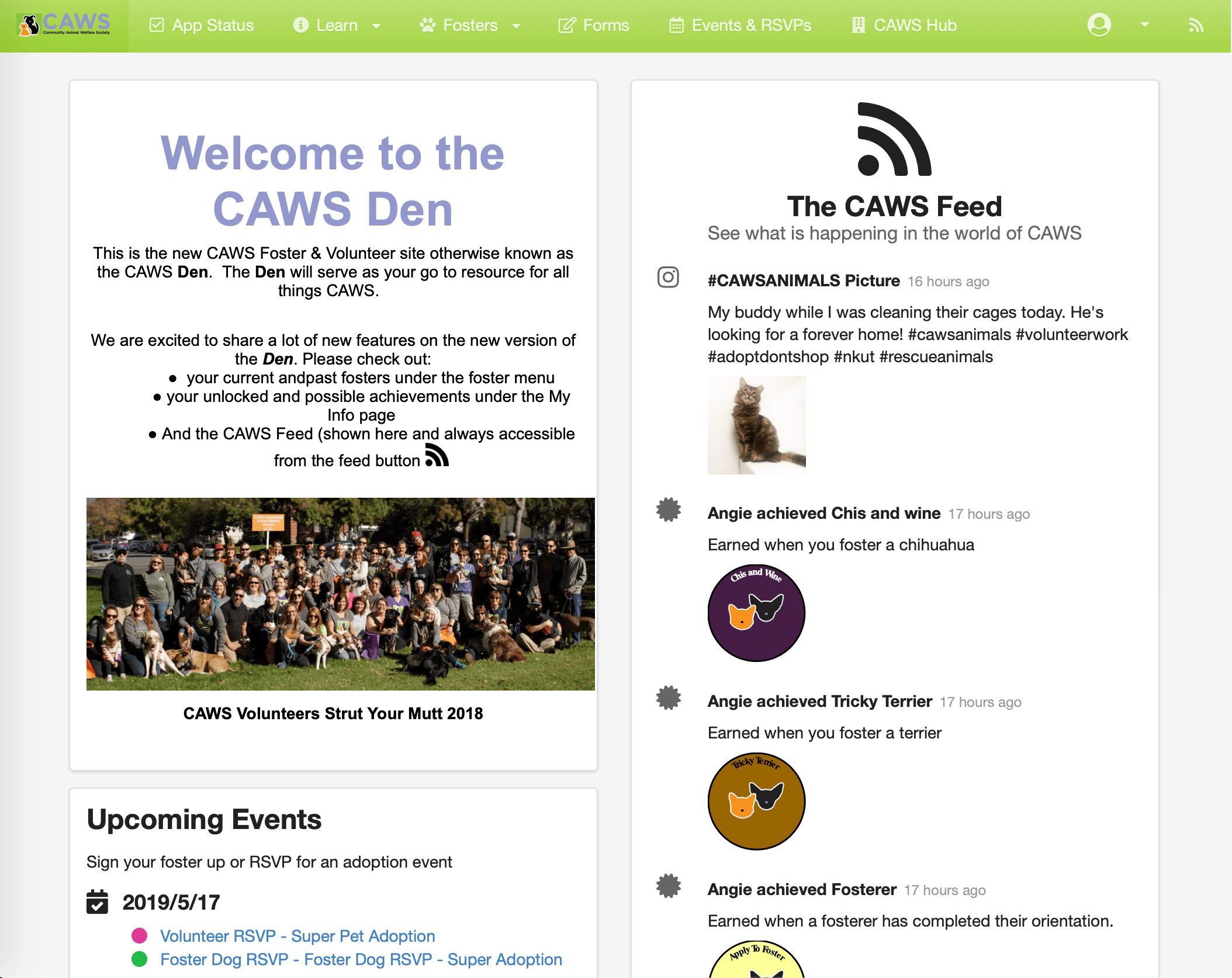 Serving in both a volunteer and leadership role within CAWS, the need for a central location for communication was needed. To address this need The CAWS Den was developed. The primary objectives behind the development of The CAWS Den were